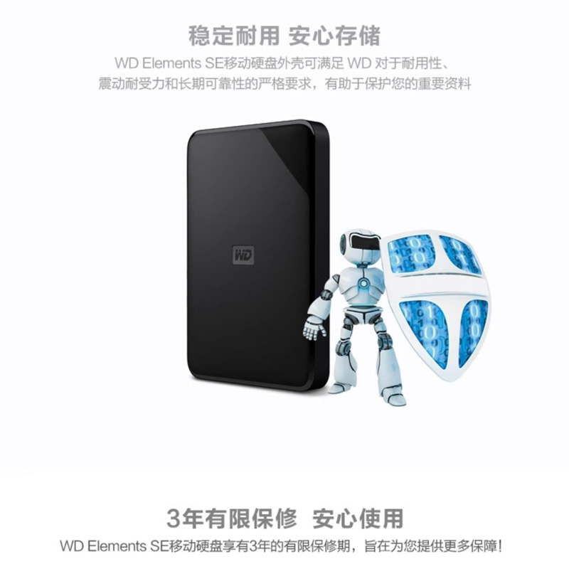 西部数据移动硬盘2T大容量硬盘2TB高速usb3.0外接笔记本电脑 外置存储办公2.5英寸机械硬盘大容量家庭存储